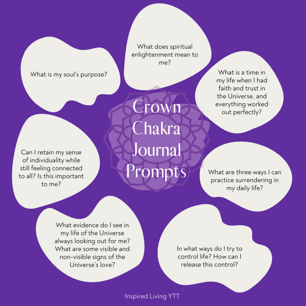 Each chakra has a unique sound, called a seed sound or mantra. However, the third eye and crown chakras share a sound – om. Try silently chanting this sound to connect to your crown chakra. You can also listen to this crown chakra playlist on Spotify for inspiration.